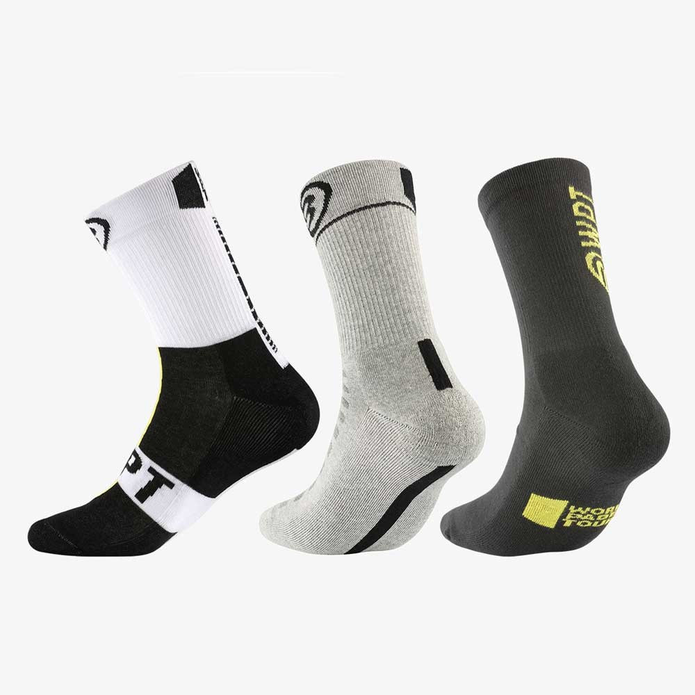 Die pack 3 WPT 2023 Bullpadel Socken wurden entwickelt, um Komfort, Atmungsaktivität und Leistung während Ihrer Padel-Spiele zu bieten.