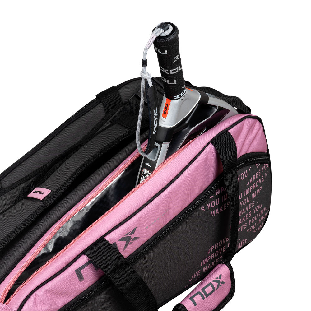 Compartiment principal #2 : Espace supplémentaire pour un deuxième raquette, l’équipement et d’autres accessoires nécessaires au jeu. Sa grande taille vous permet de transporter tout ce dont vous avez besoin sans compromettre l’espace.