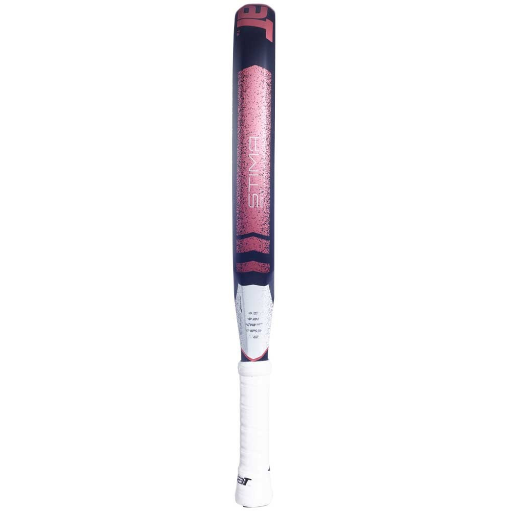 Babolat Stima Spirit em preto e rosa para mulheres com formato redondo e equilíbrio médio, ideal para jogadores de nível intermediário que gostam de dominar a bola e o jogo no fundo da quadra.